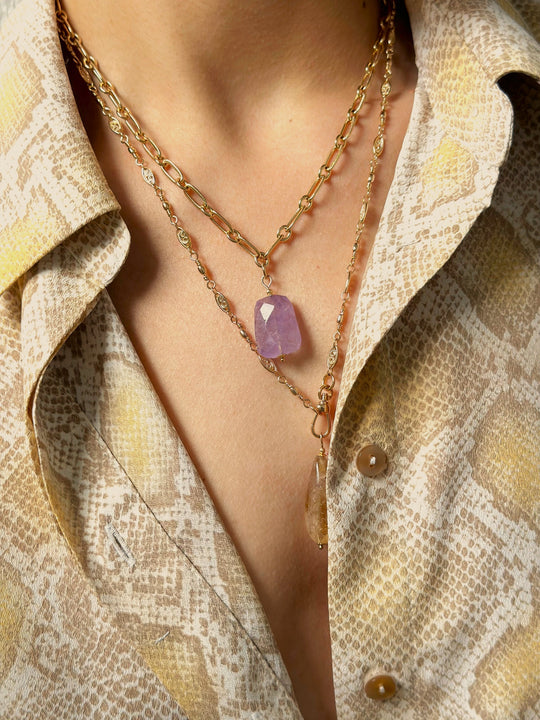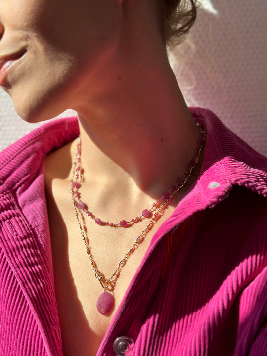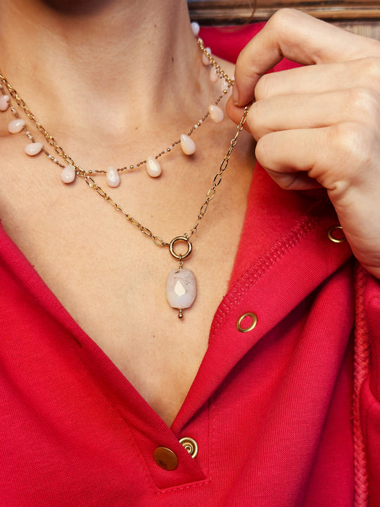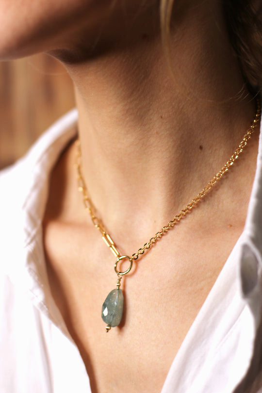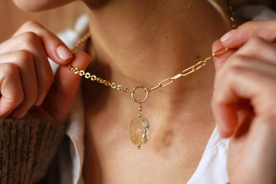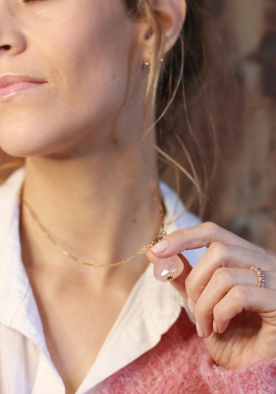 Une collection subtile qui ne laissera personne indifférent avec ces pierres brutes et facettées associées à des chaînes au style affirmé en plaqué or. Des pierres naturellement uniques à porter en solo ou à associer aux modèles des autres collections Pierres de Louve. Ces créations arborent élégance et caractère, alliant la beauté brute du minéral et une allure joaillerie.